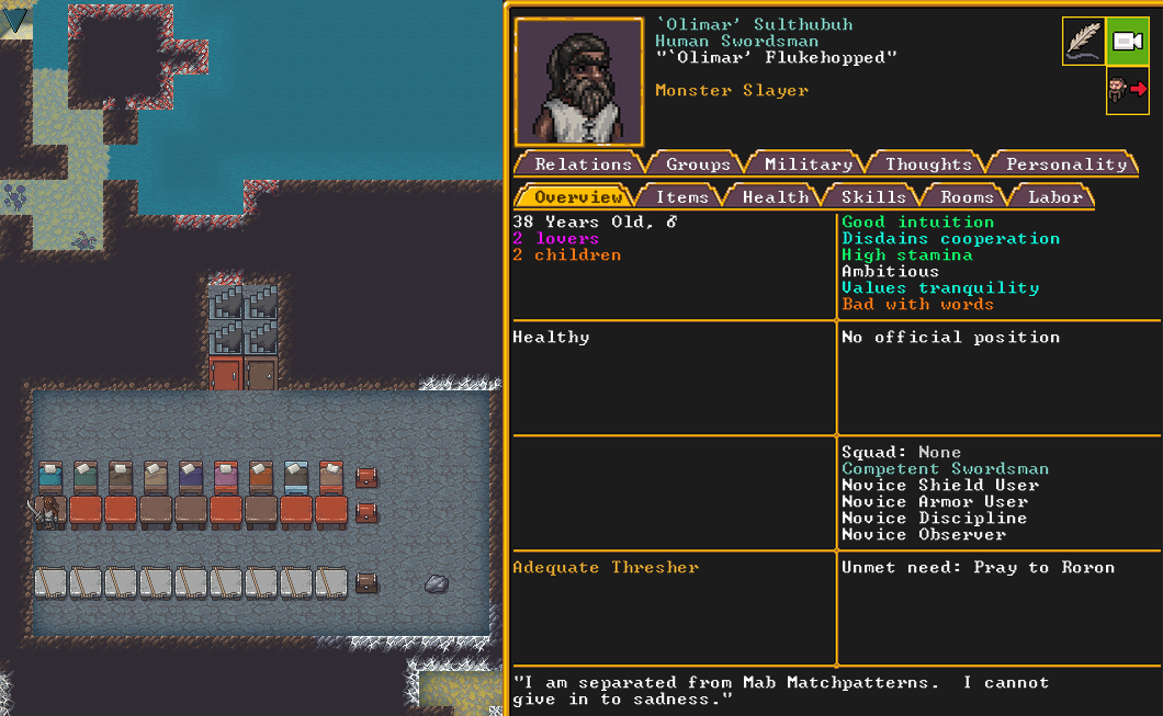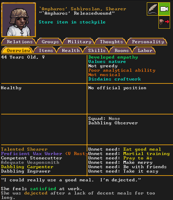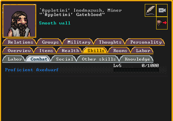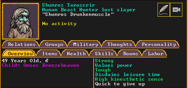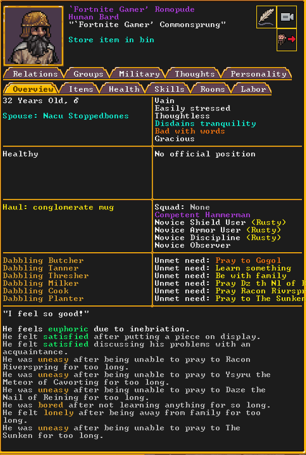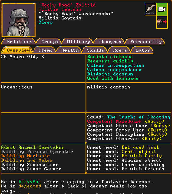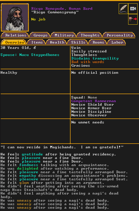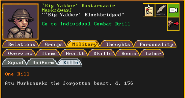 Autumn 155: North Berry, our macedwarf, is very unhappy being in the military. We substitute them with a new dwarf who recently migrated, named Stan.