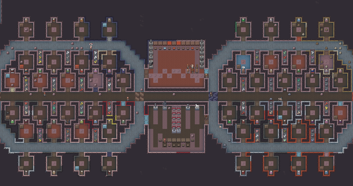Summer 151: Our first migrant wave has arrived. We set to work carving more bedrooms for our citizens. Maya and Pop Rocks, who fled our previous settlement, have arrived, and marvel at the accuracy in which we captured the designs of Wisdomconstructs. We are now at 18 citizens.