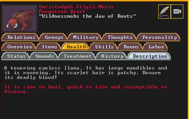 Winter 161: A new forgotten beast has come, called Wildnessmobs the Jaw of Routs. They are a towering eyeless llama beast with scarlet hair and deadly blood. It does not look like a llama at all.