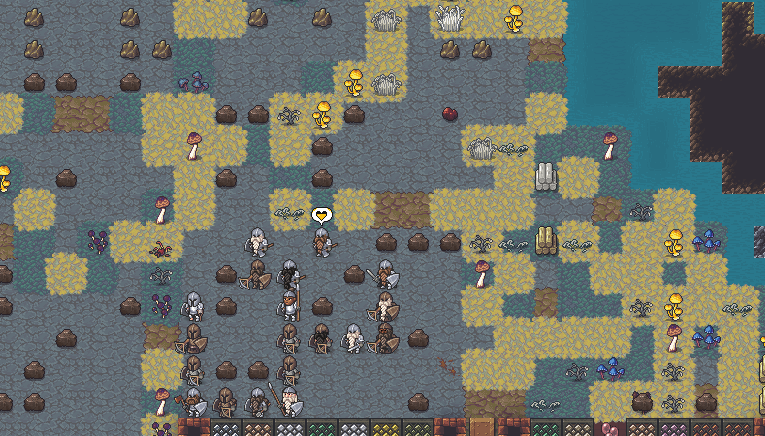 Autumn 165: The traders did not bring much for us. As Maya as heading inside, she noticed that there was an invading force lying in ambush. Now revealed, we prepared our dwarves to attack them.