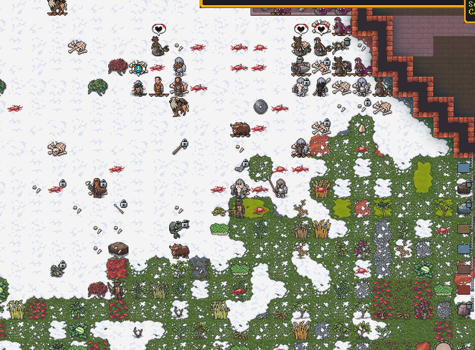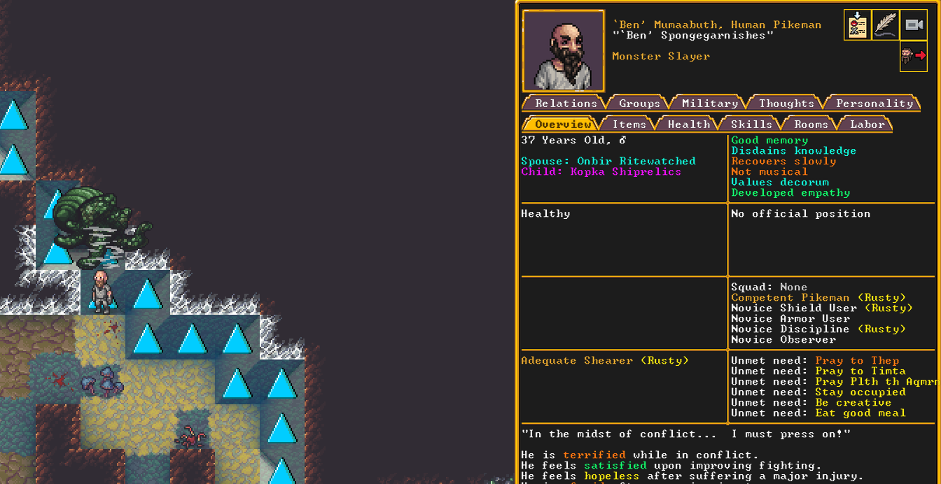 Winter 160: Pizza Delivery, an ave poet, was killed as well. Claydol, the human pikeman was killed. Lucario, a siege operator was killed. Peachy Keen, an ave dancer, was killed. It is very problematic that Rocky Road was killed, as we were relying on them to train our second military squad. We conscript Big Head Man to be the new militia leader as he had tried to steal from us.