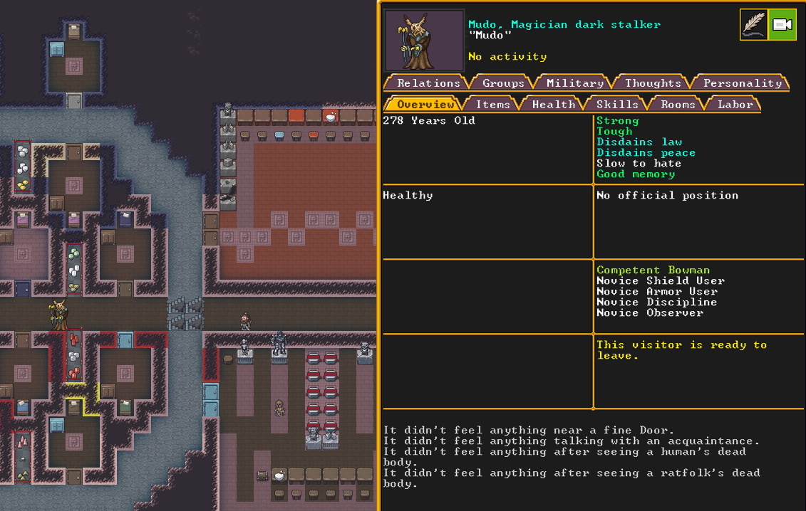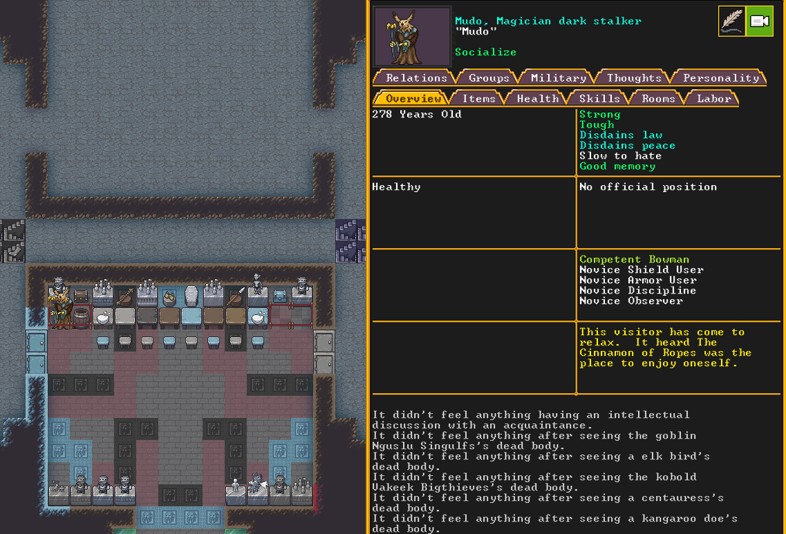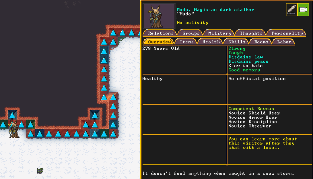 Summer 153: Super scary - a Magician dark stalker has come to our fortress. It is unclear what for. We followed him as he prayed briefly in our temple, and then hung out in our hospital for a while. No one mustered up the courage to speak to him, so he left.