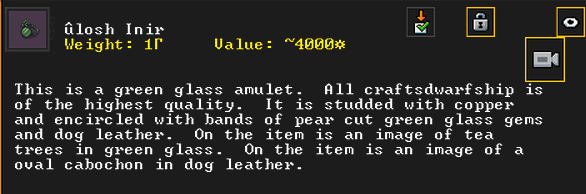 Spring 153: After a bit of assistance in getting green glass and some leather, Linguini finished his life’s masterwork, a green glass amulet artifact called Ulosh Inir (The Stigmata of Declining).