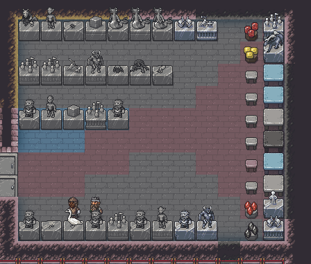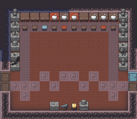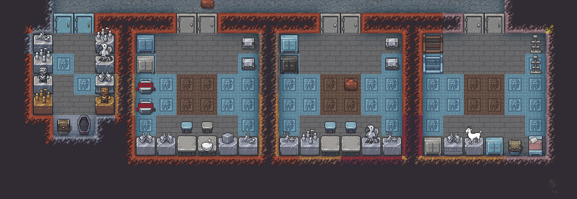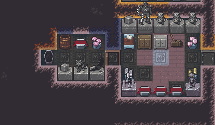 Autumn 153: Ize! the sacred earth, had his personalized quarters finished. His bedroom features some lovely gemstones, and his tomb features a clear glass statue of Grasshopper, Uzol the Walled Crystal, and a commissioned statue of Ize! himself, being elected to the role of sacred earth of The Umber Communion in the late autumn of year 152. Riseesteems, the silver crutch artifact, is on a pedestal in his tomb to show how with a strong deity, anyone can stand with assistance.