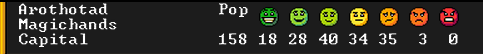 Winter 161: We managed to kill the rest, but times are dire. We only have 135 citizens, when we had over 150 to start the year. Of small consolation is the fact that Illiterate joined as a permanent citizen …. They can’t even read.