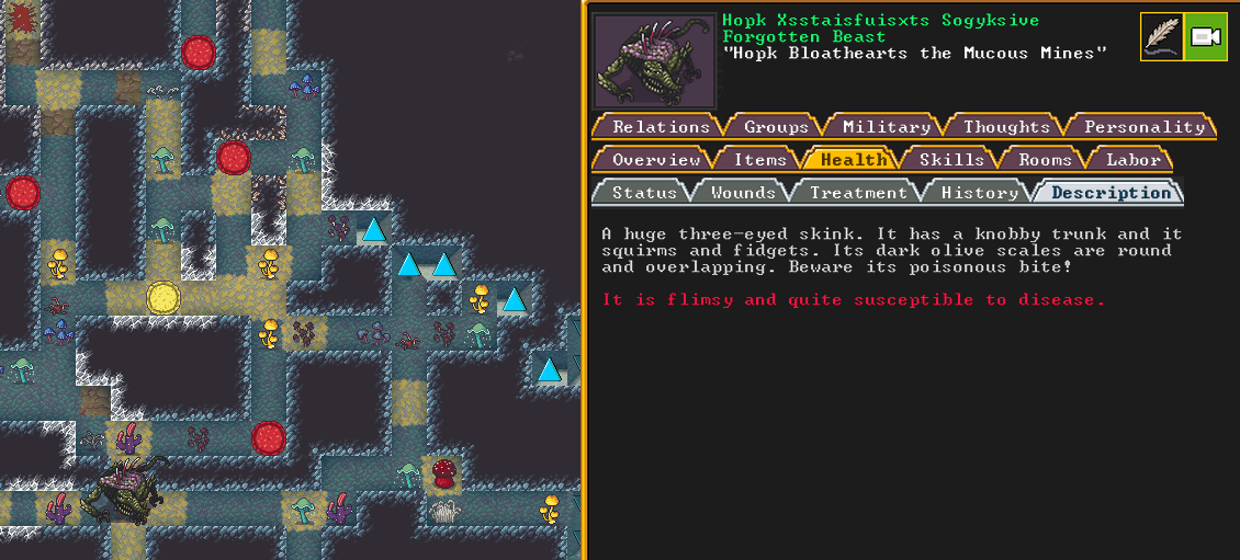 Autumn 155: A pretty cool forgotten beast, called Kure, has arrived. They are an eyeless newt, with thin wings of stretched skin. Unfortunately, they are likely no match for Zile Depthidoles the Little Fleck, the powerful crystal glass humanoid that rules our second cavern layer.