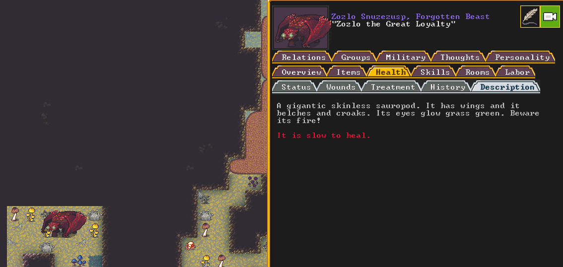 Summer 154: Our first forgotten beast has arrived! Their name is Zozlo the Great Loyalty, a gigantic skinless sauropod with wings, glowing eyes, and a fire breath attack.