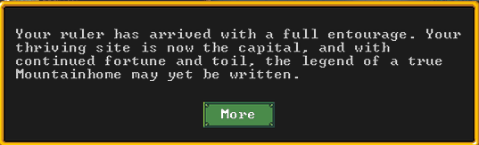 Autumn 161: A new song has played, a song of sorrow. Many have died. We may be victorious, but at what cost? This place of ours, Magichands, cannot truly become a Mountainhome until our dwarves and citizens are truly safe here. The Queen mourns, and she is angry. She demands another melee militia squad be created, and more defenses be constructed.